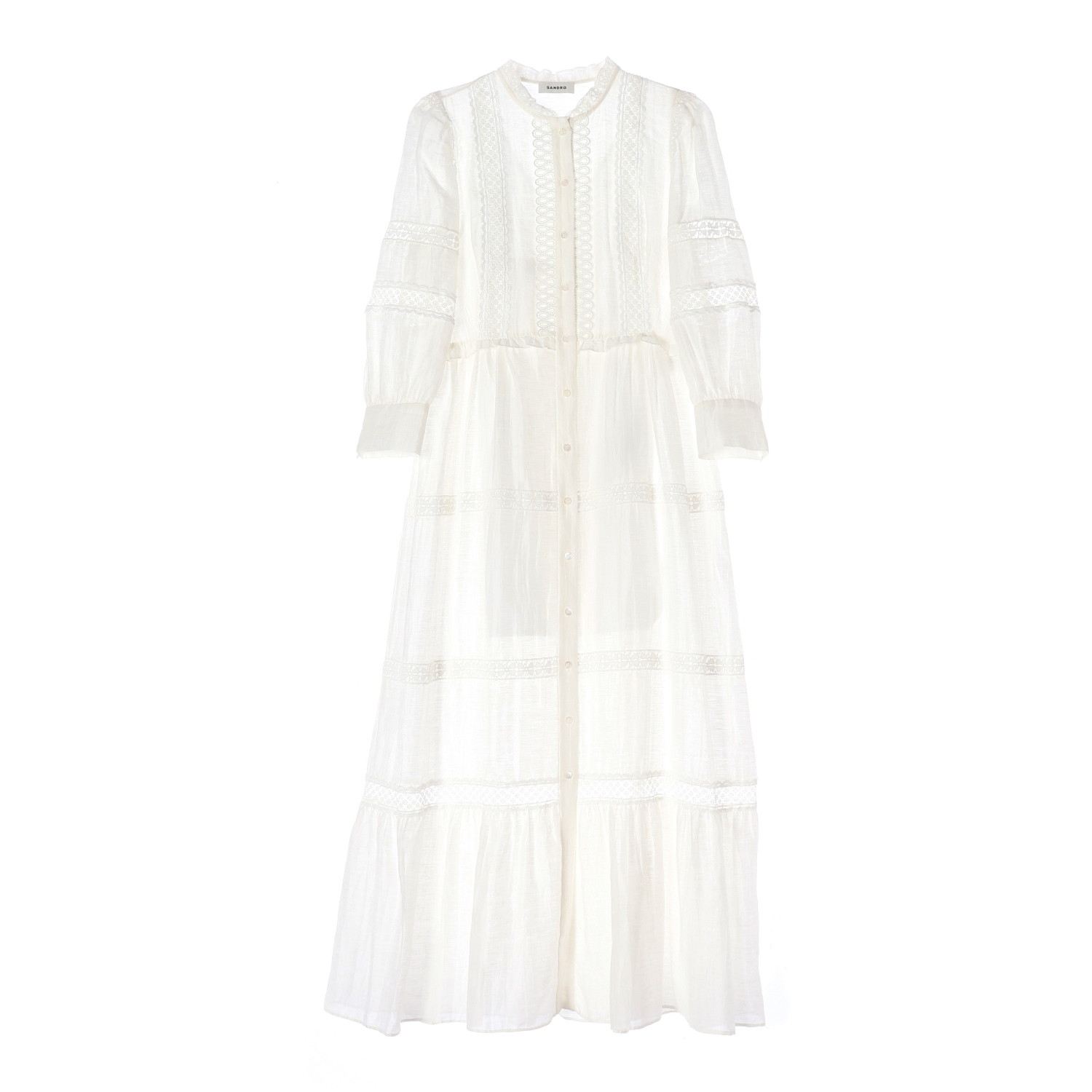 산드로 린넨 레이스 아일렛 슬립 레이어드 세트 셔츠 롱 원피스 화이트