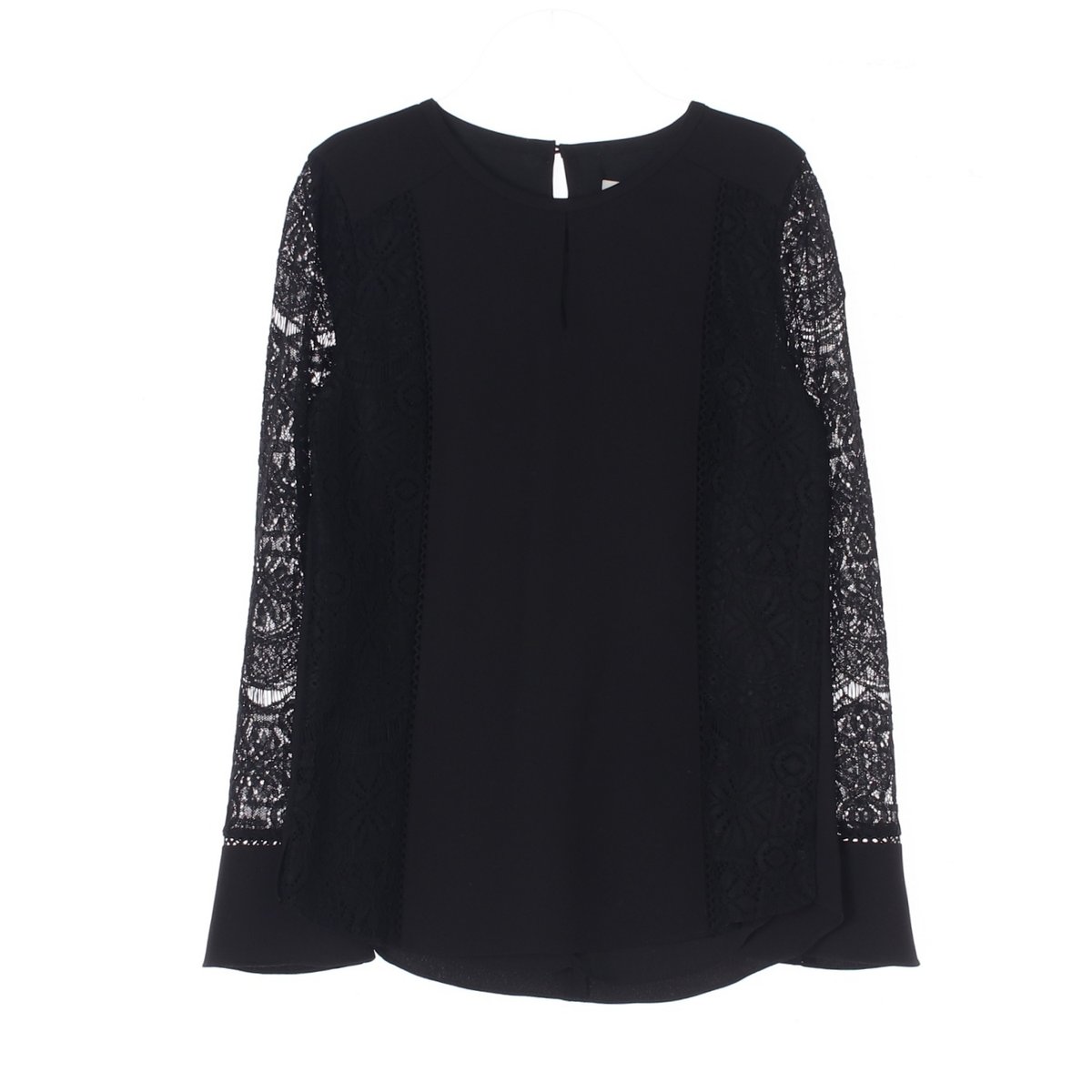 잇미샤 블랙 레이스 소매 긴팔 블라우스