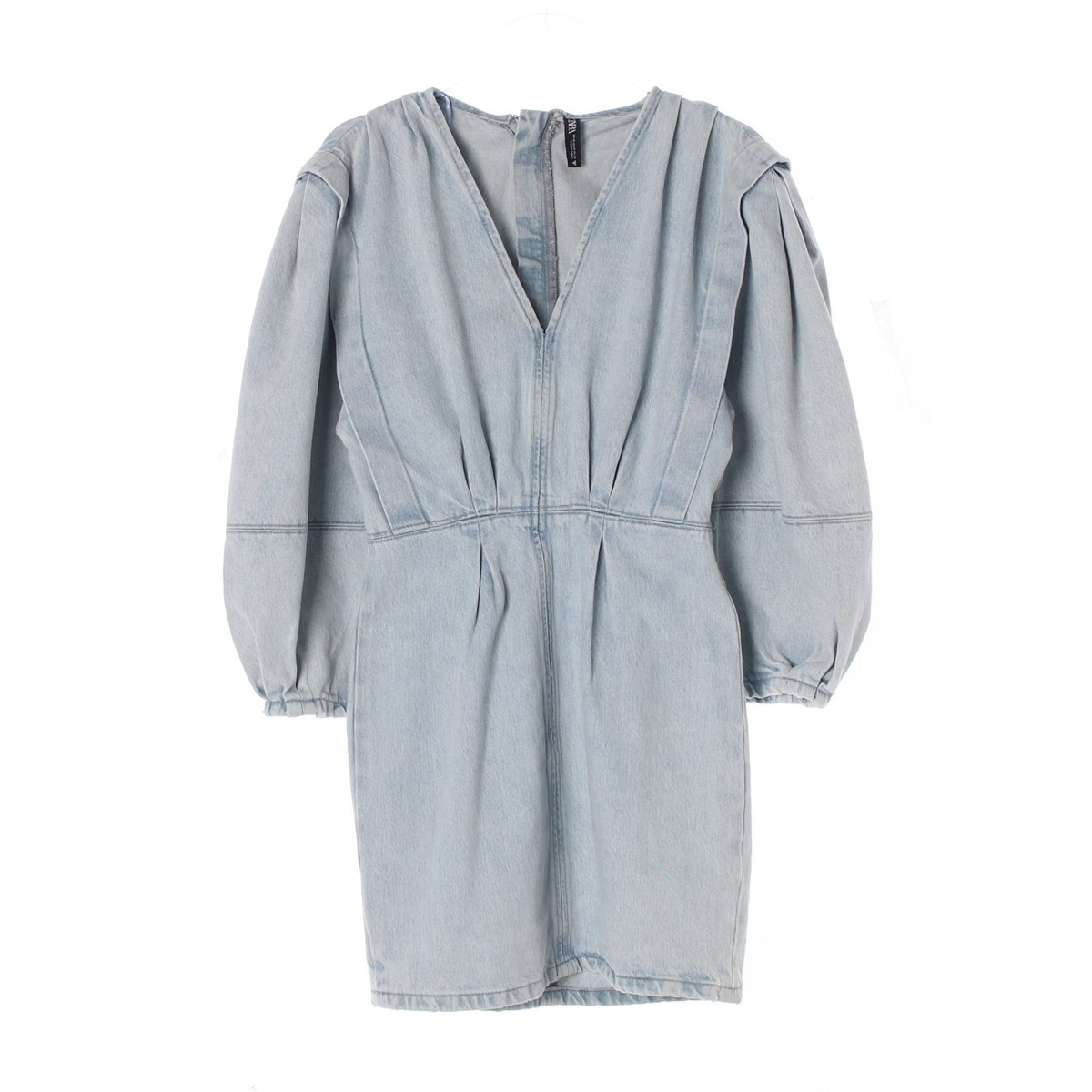 자라 연청 브이넥 긴팔 미니 데님원피스