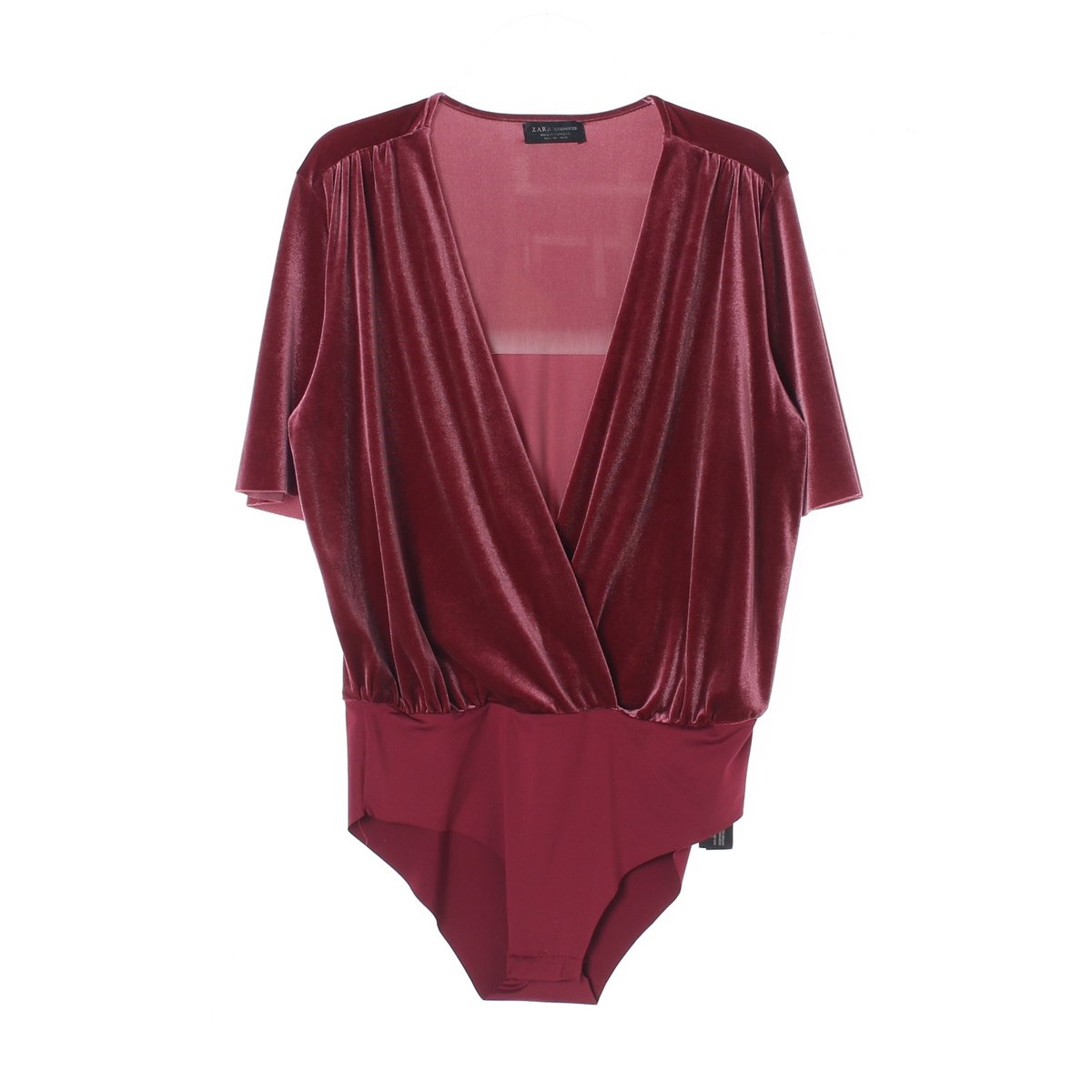 자라 레드 벨벳 브이넥 반팔 바디수트