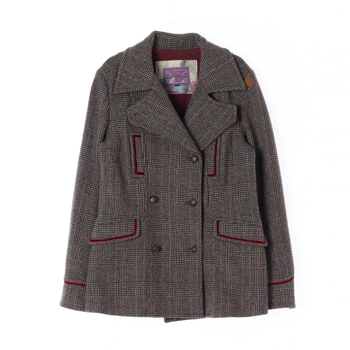 써스데이 아일랜드 울90% 체크 더블 하프 코트