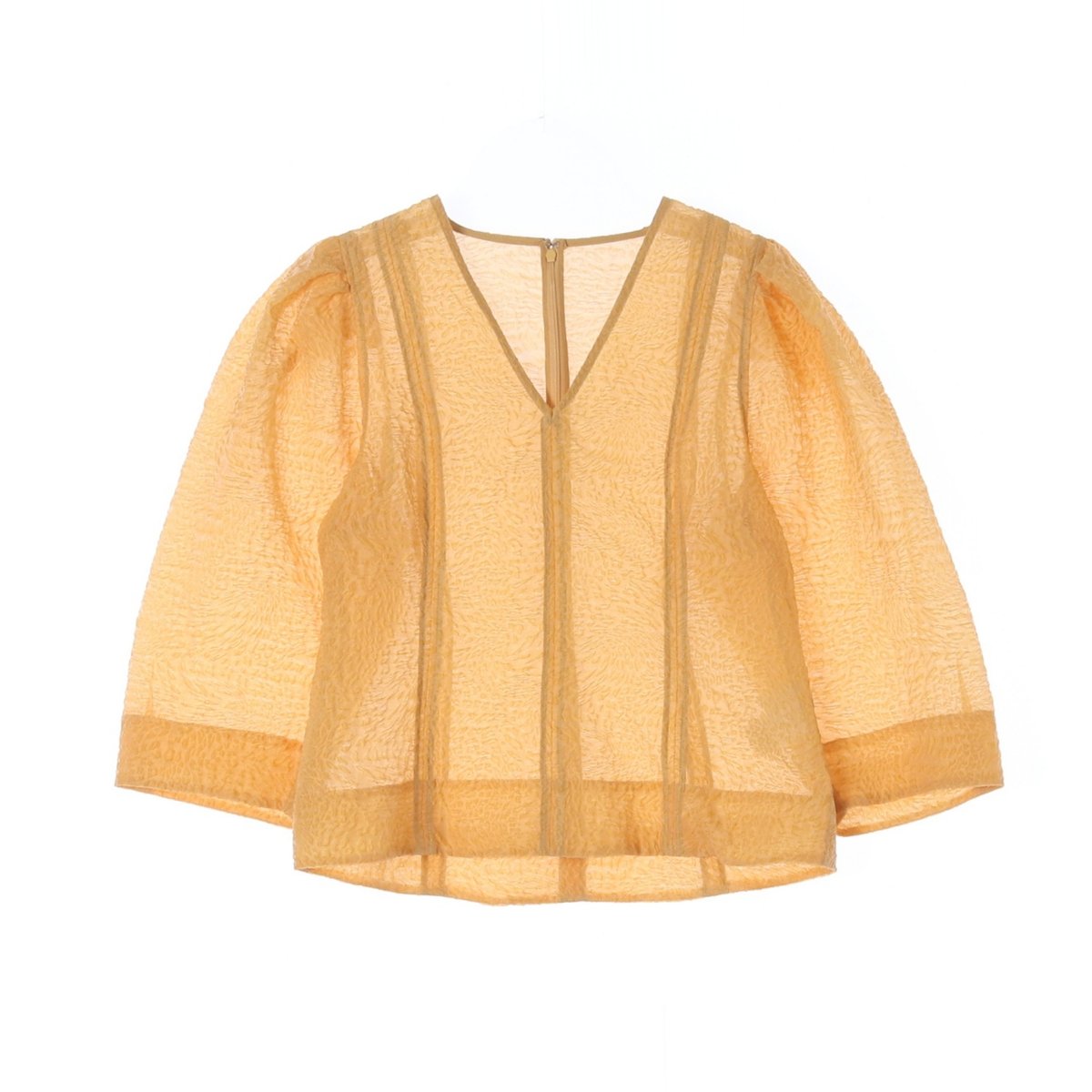 ORR오르 옐로우 퍼프 브이넥 시스루 블라우스