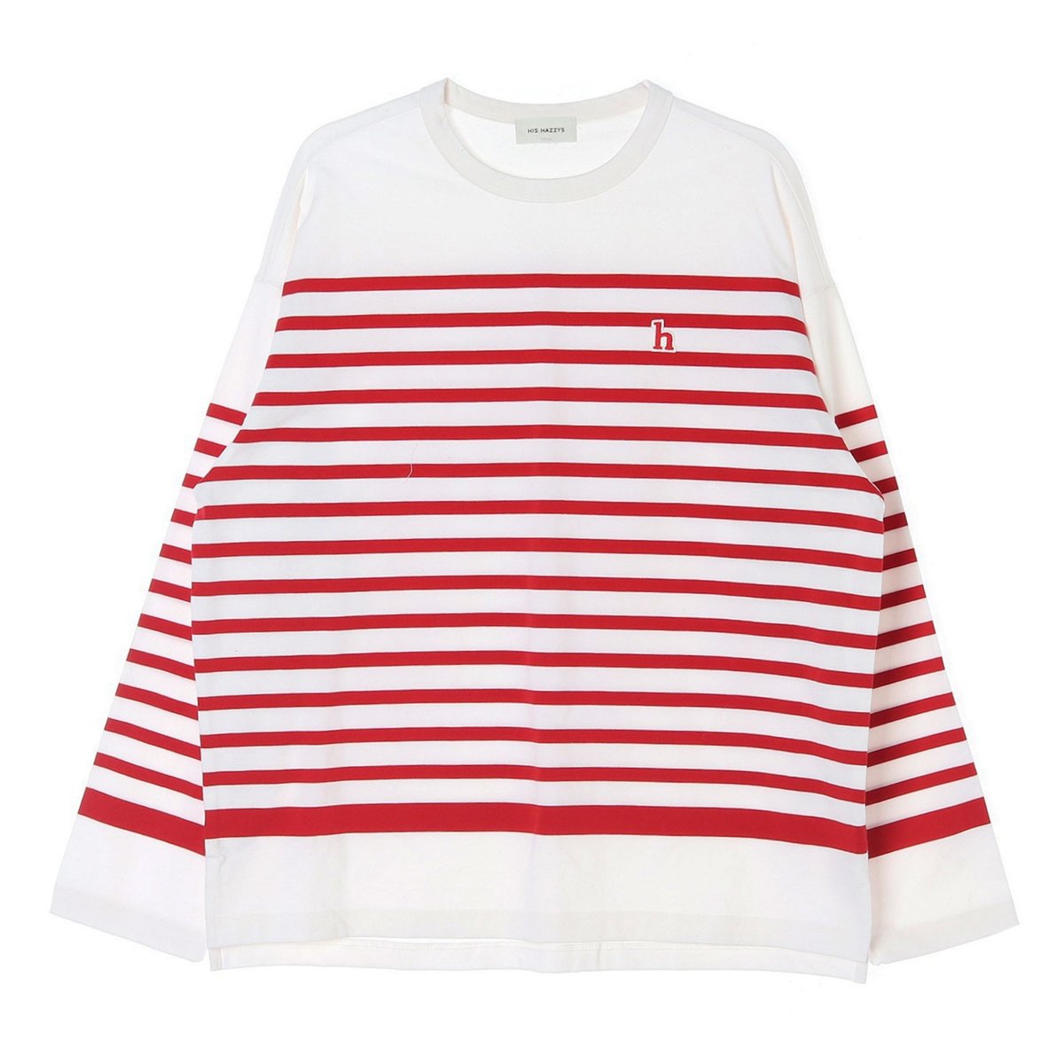 헤지스 화이트 레드 스트라이프 긴팔 티셔츠