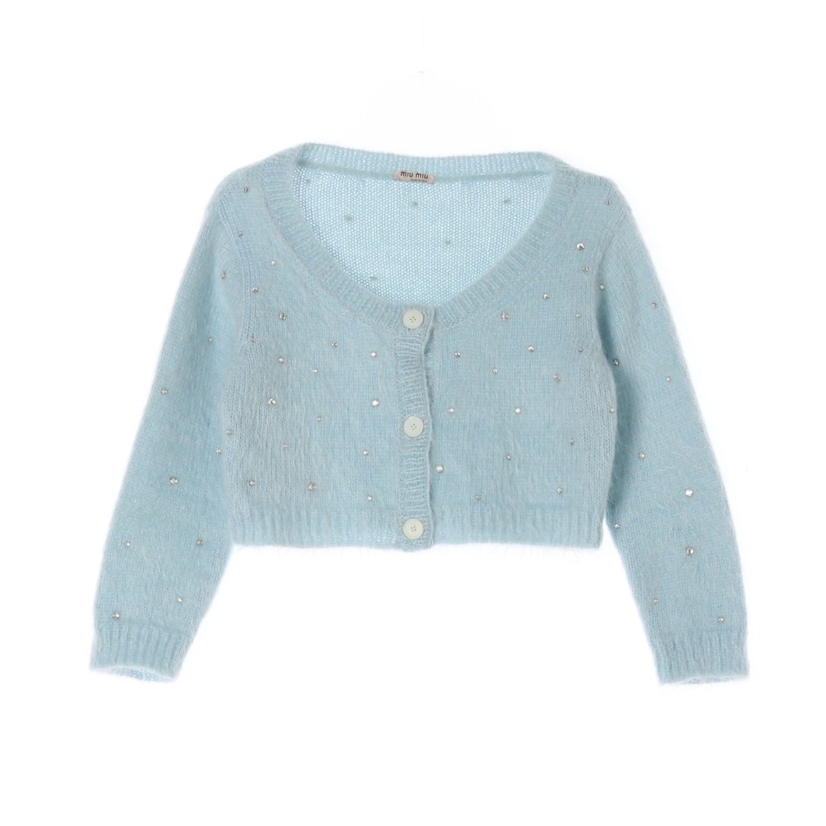 미우미우 모헤어 큐빅장식 크롭 가디건