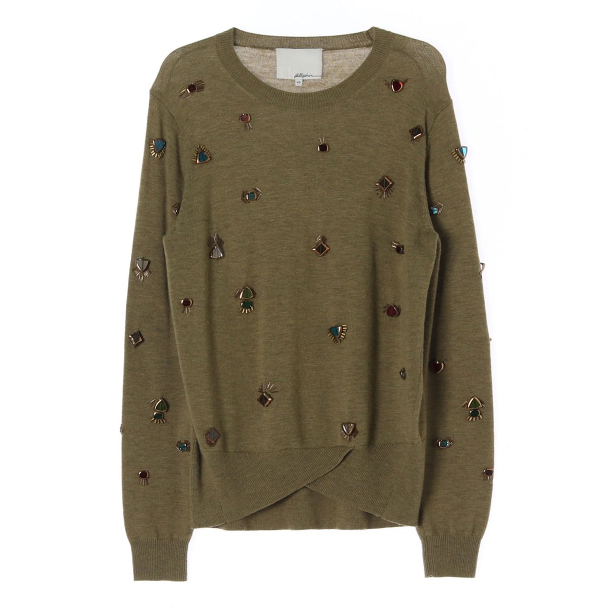 3.1필립림 31필립림 카키 보석 비쥬 니트 스웨터.