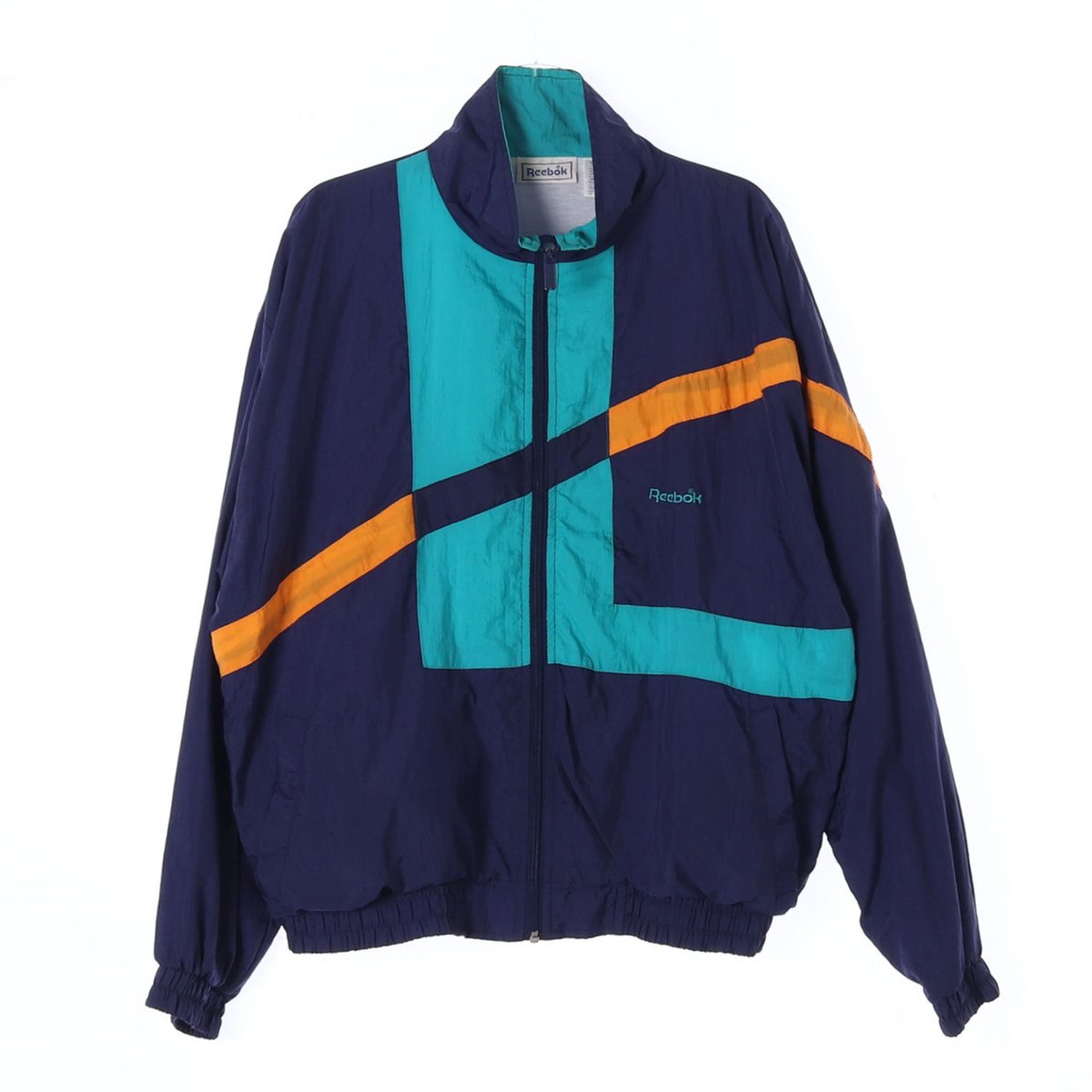리복 네이비 블루 나일론 오버핏 바람막이 점퍼