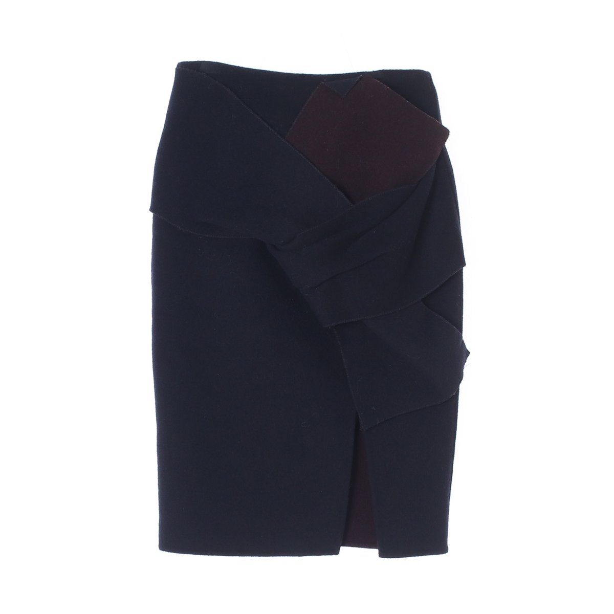 오즈세컨 오즈세컨 울61 네이비 버건디 리본 드레이프 스커트.