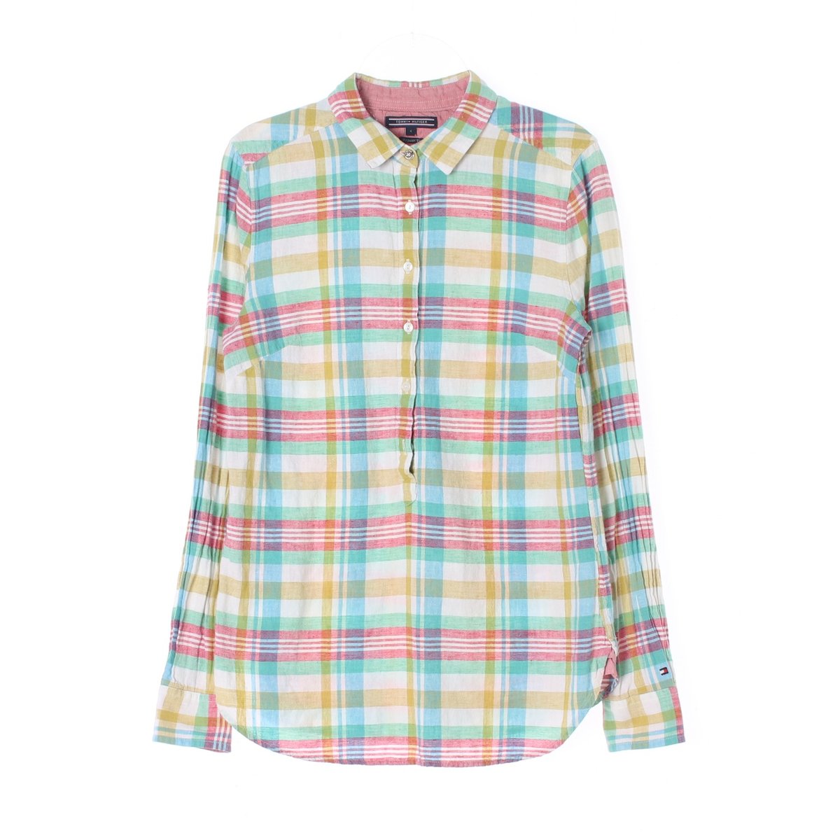 타미힐피거 린넨 체크 하프 버튼 긴팔 셔츠