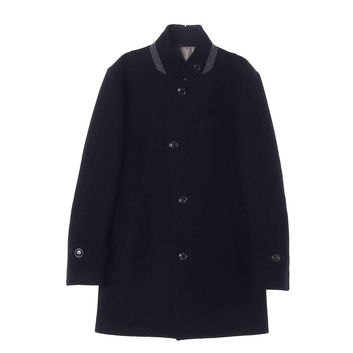 커스텀멜로우 울87% 네이비 하이넥 싱글 발마칸 코트