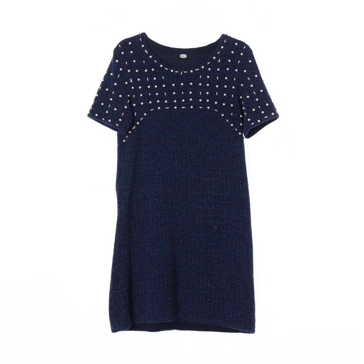 듀엘 네이비 진주 장식 울 니트 미니원피스
