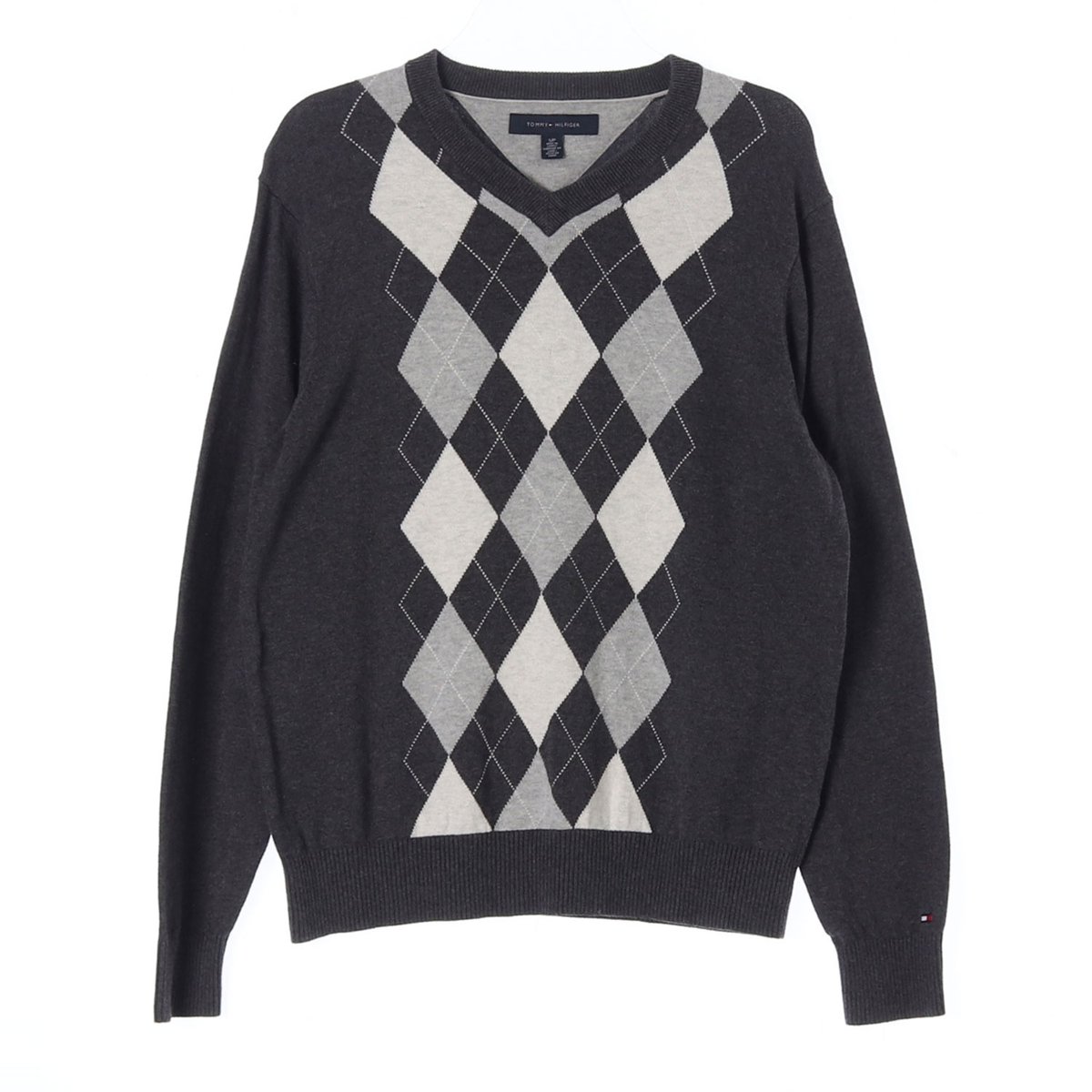 타미힐피거 차콜 아가일 체크 코튼 니트 스웨터
