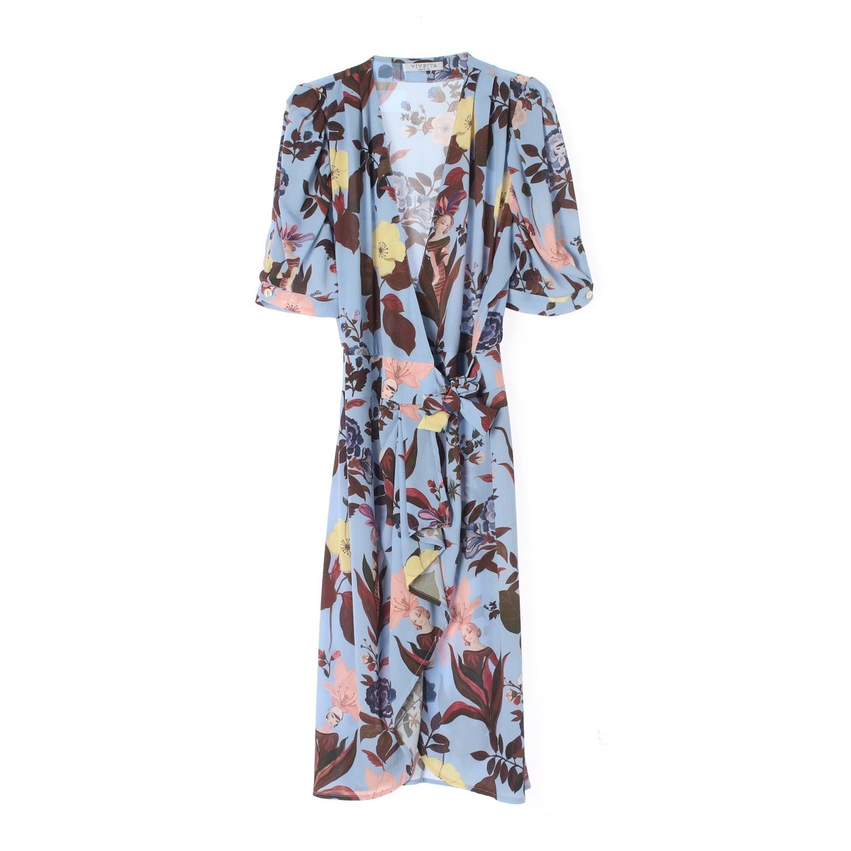 비베타 스카이블루 플라워 반팔 랩 원피스
