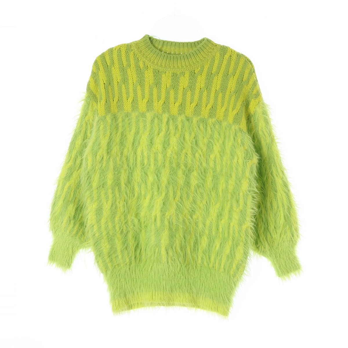 자라 그린옐로우 라운드 헤어리 니트 스웨터