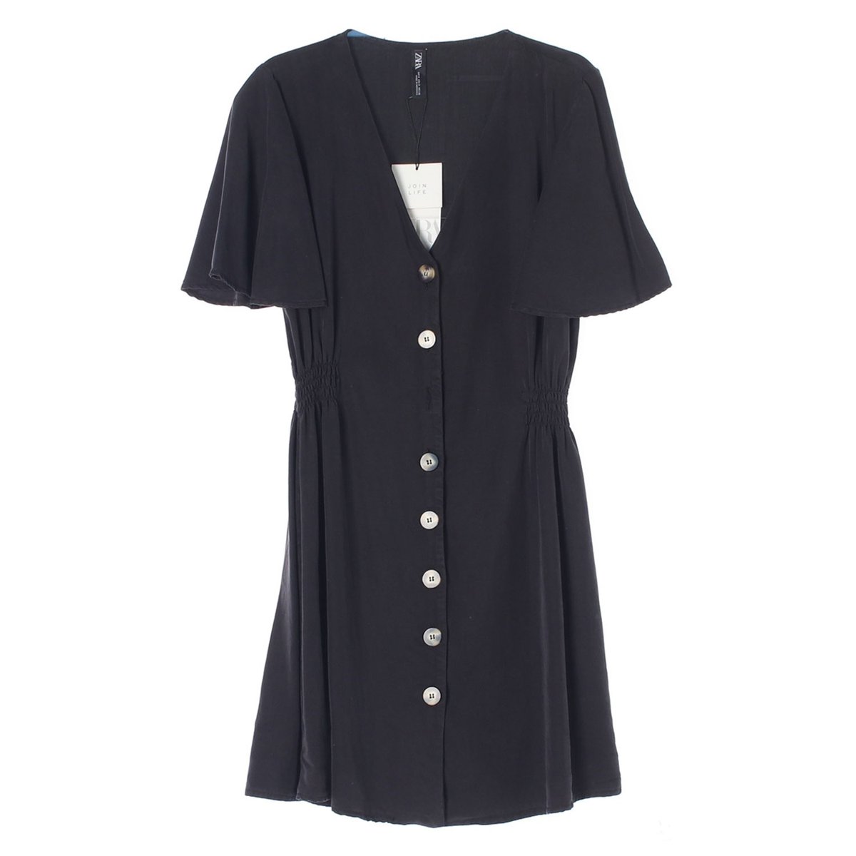 자라 블랙 러플 소매 브이넥 셔츠 미니 원피스