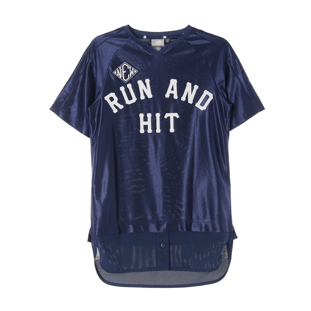 뉴발란스 네이비 레이어드 유광 져지 반팔 티셔츠