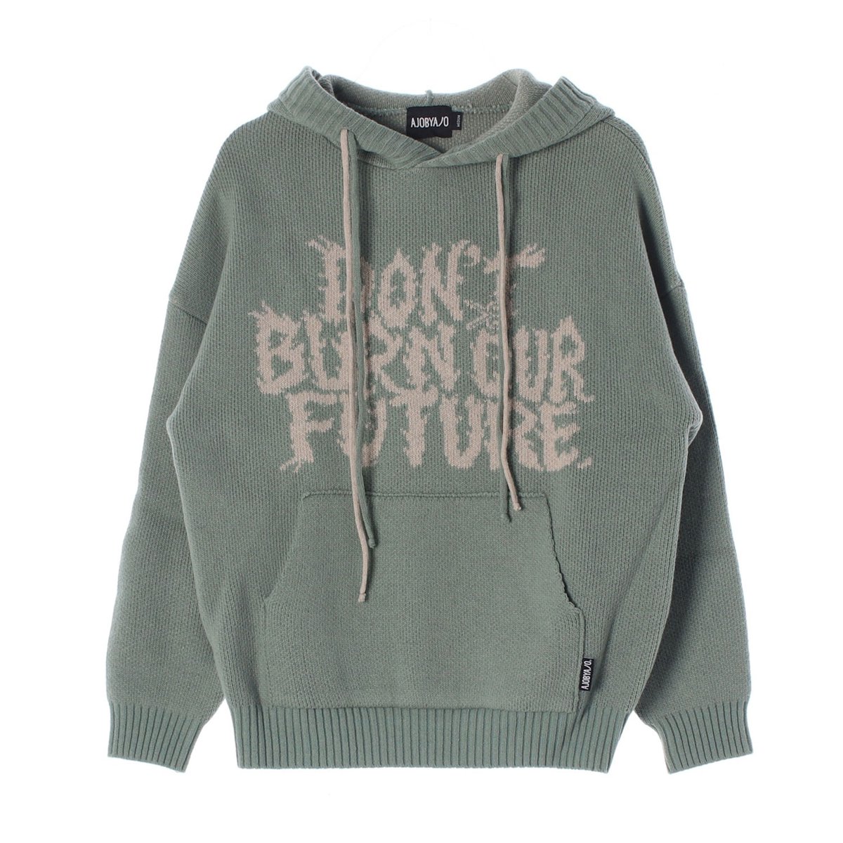 아조바이아조 그린 슬로건 울 후드 니트 스웨터