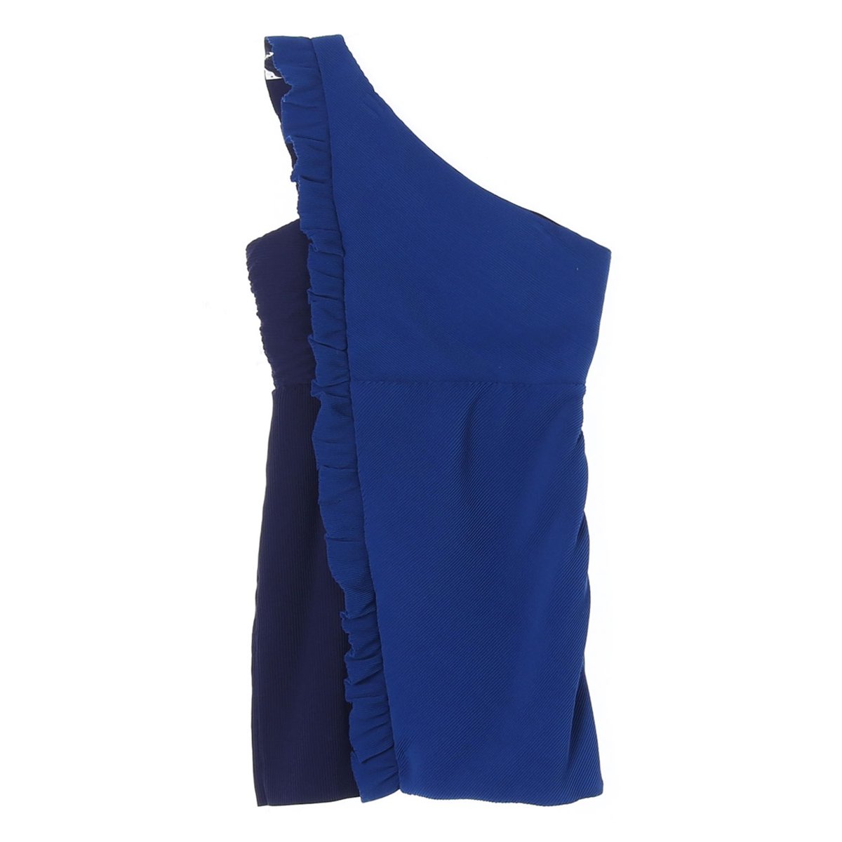 산드로 블루 원 숄더 오프숄더 미니 러플 칵테일 드레스