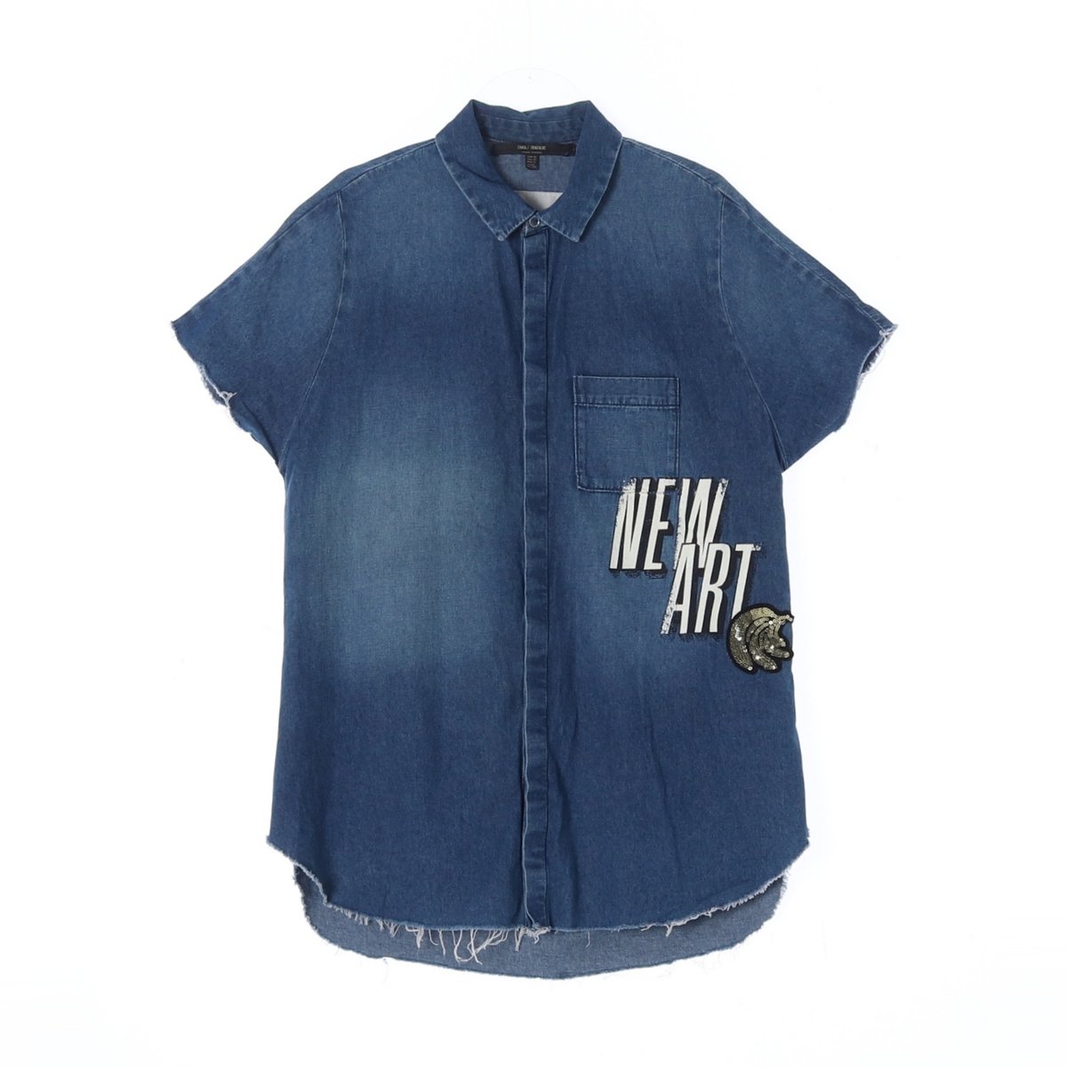 자라 자라 데님 컷아웃 반팔 청셔츠.