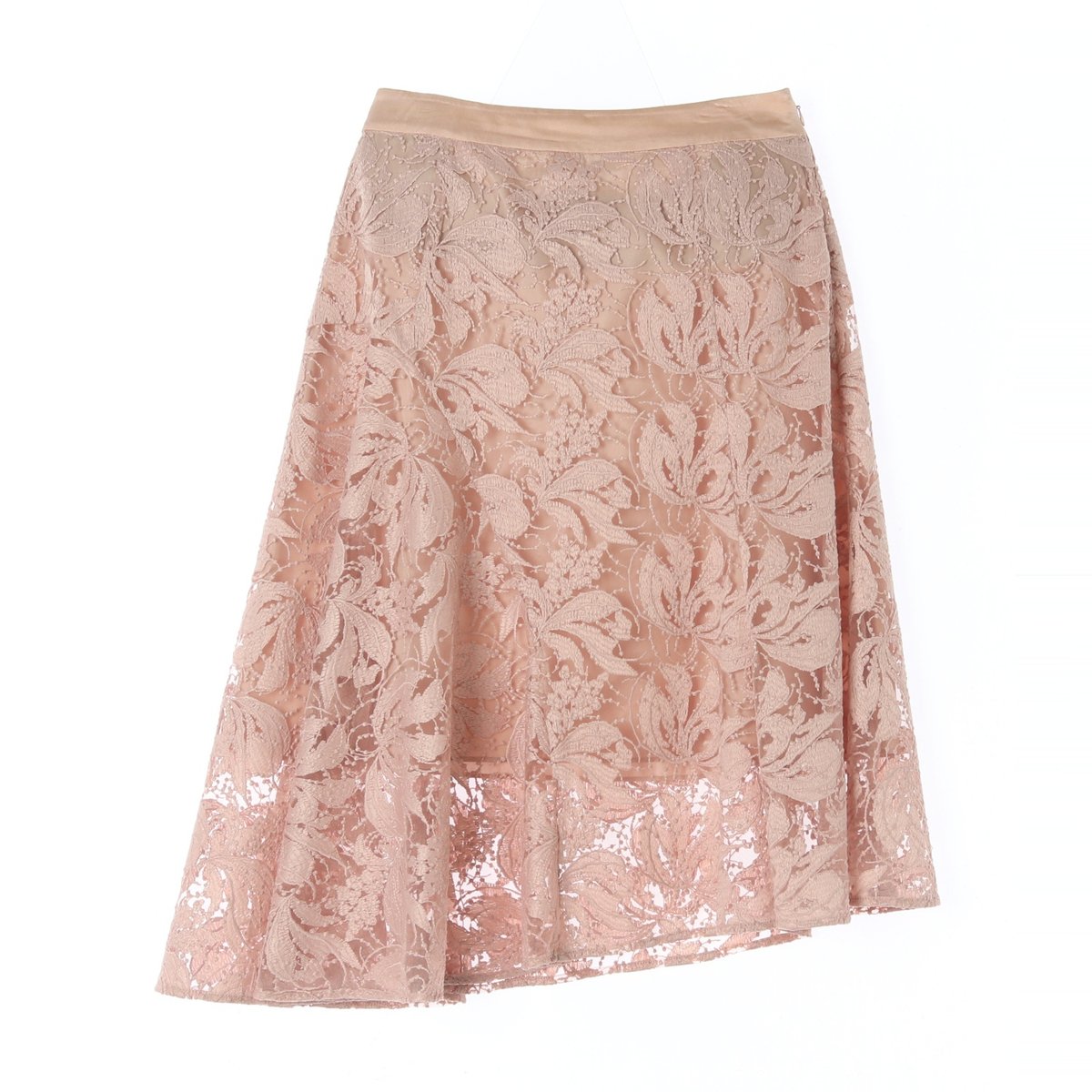 레니본 레니본 베이지 레이스 사선 플레어스커트.
