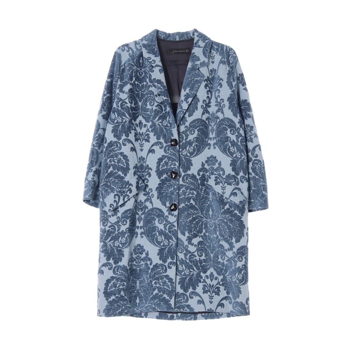 자라 블루 플로럴 자카드 패턴 싱글 롱코트