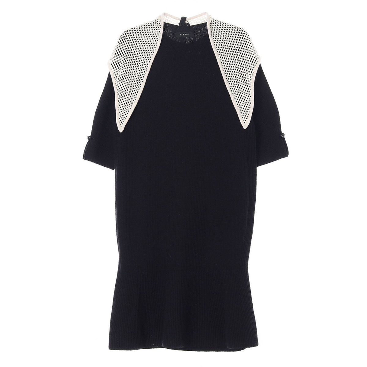 마인 마인 후드 머플러 레이어드 블랙 니트원피스.