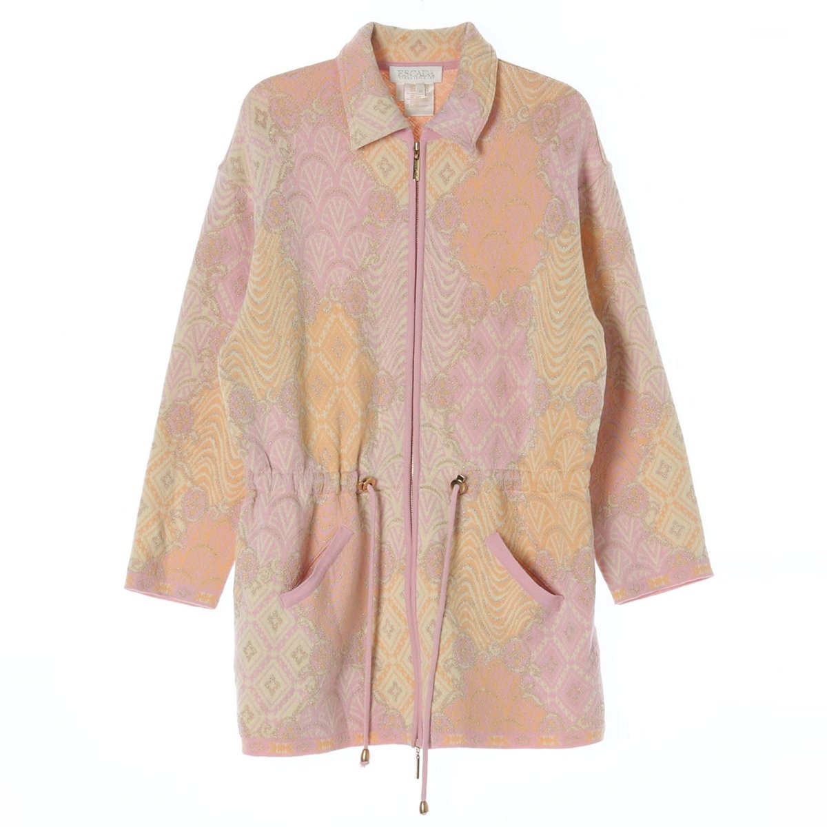 에스카다 울캐시미어85% 핑크 패턴 니트 집업재킷 가디건