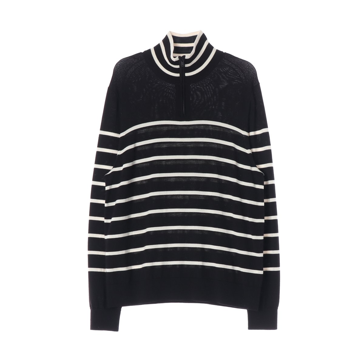 COS 코스 울100% 블랙 스트라이프 하프집업 모크넥 니트 스웨터 XL
