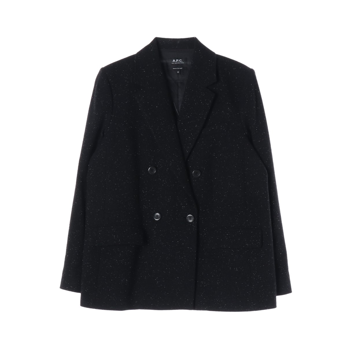 APC 아페쎄 울 실크 펄 더블 블레이저 자켓 재킷 블랙