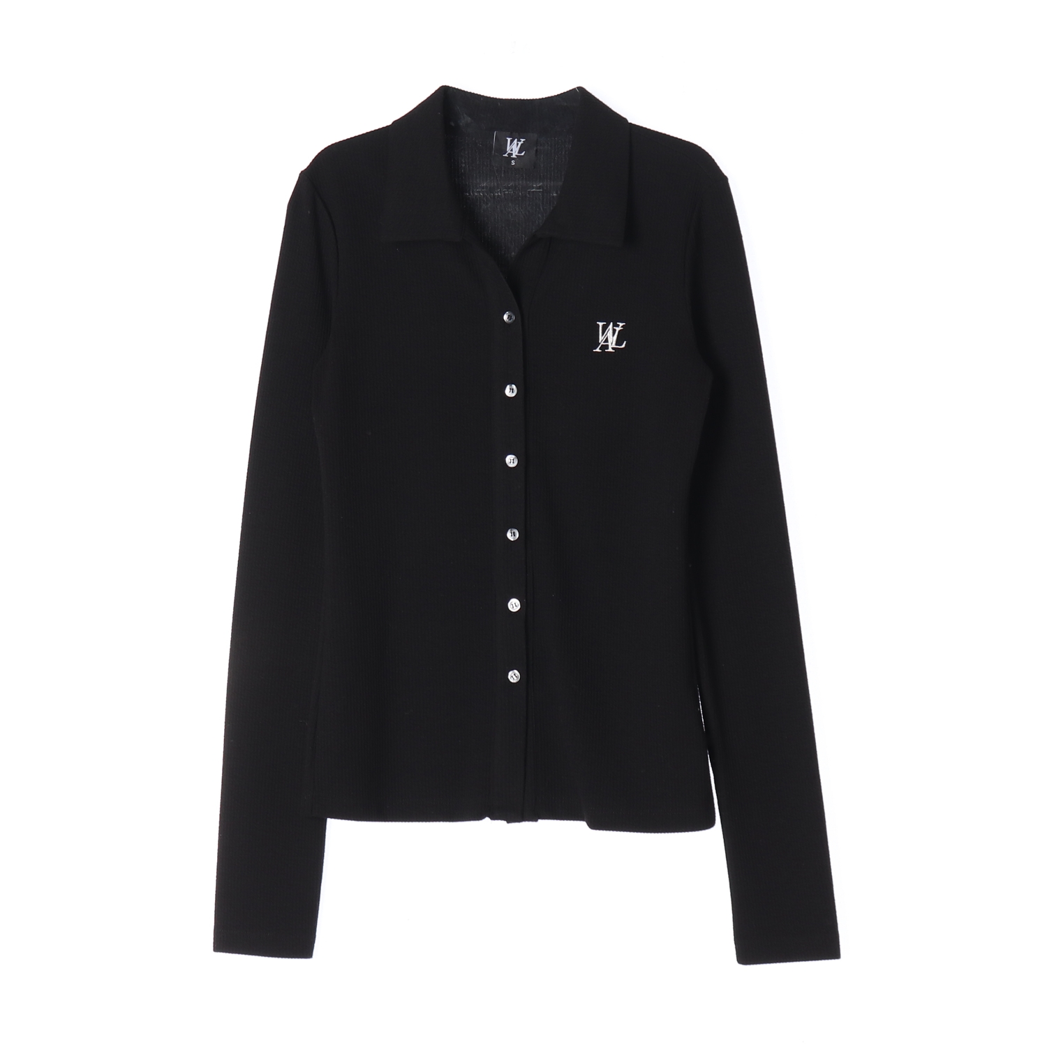 우알롱 23SS 시그니처 슬림 카라 셔츠 가디건 버튼 니트