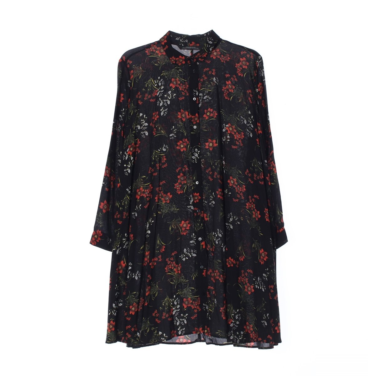 자라 블랙 플라워 셔츠 미니 원피스