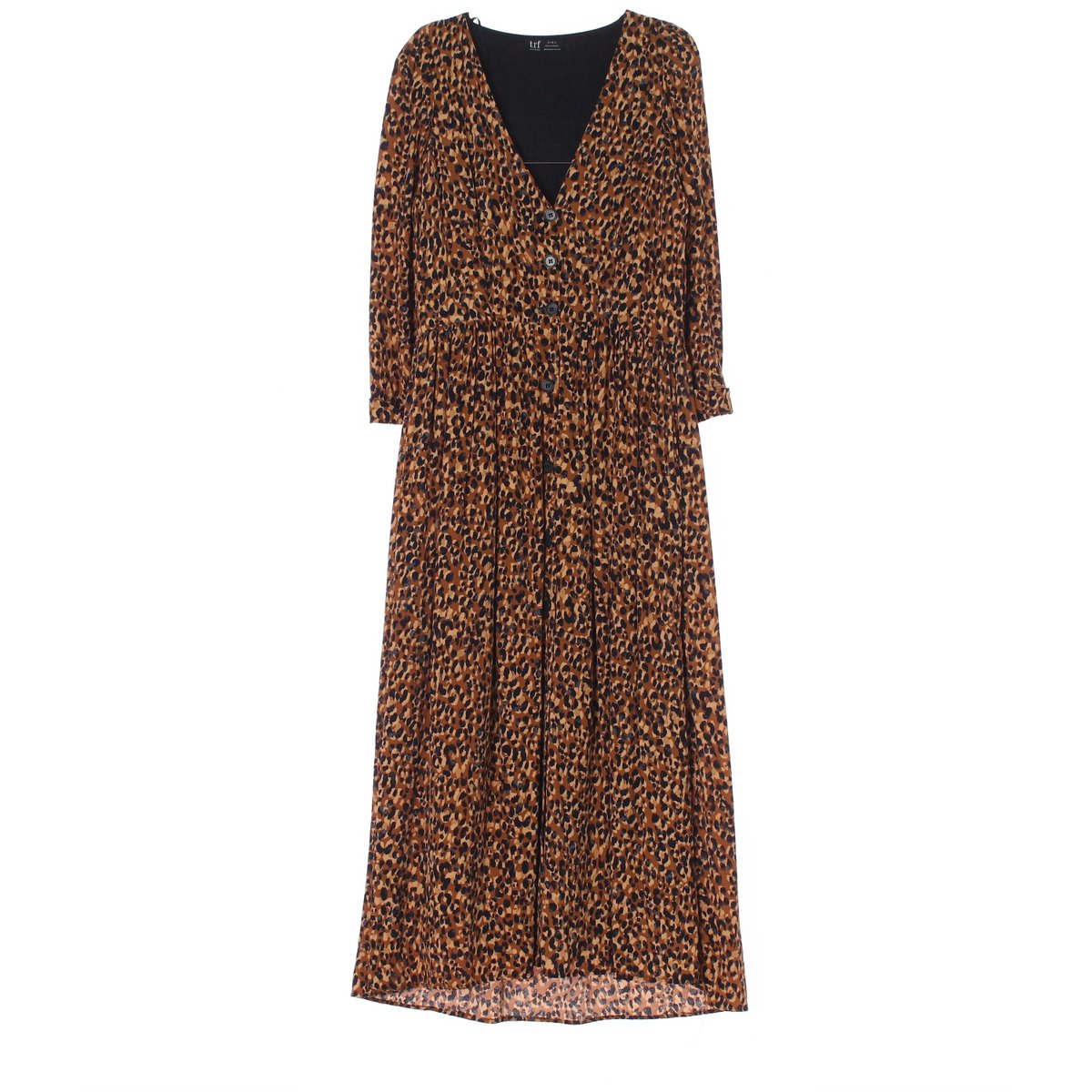 자라 브라운 레오파드 브이넥 셔츠 롱원피스