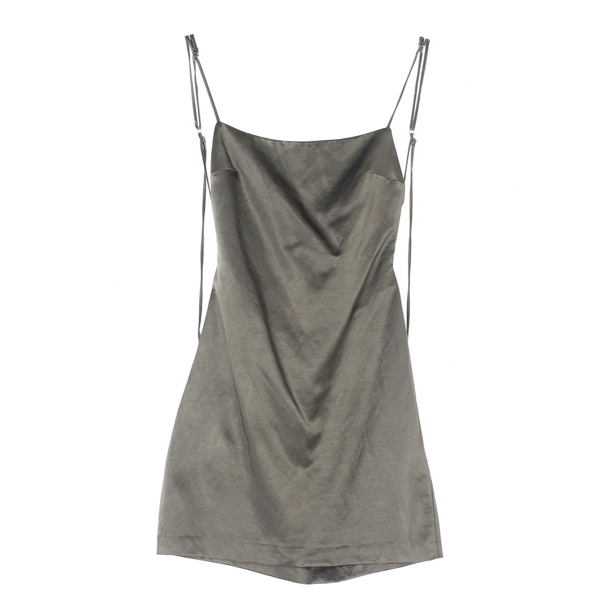 자라 카키 백절개 린넨 슬립 미니 드레스