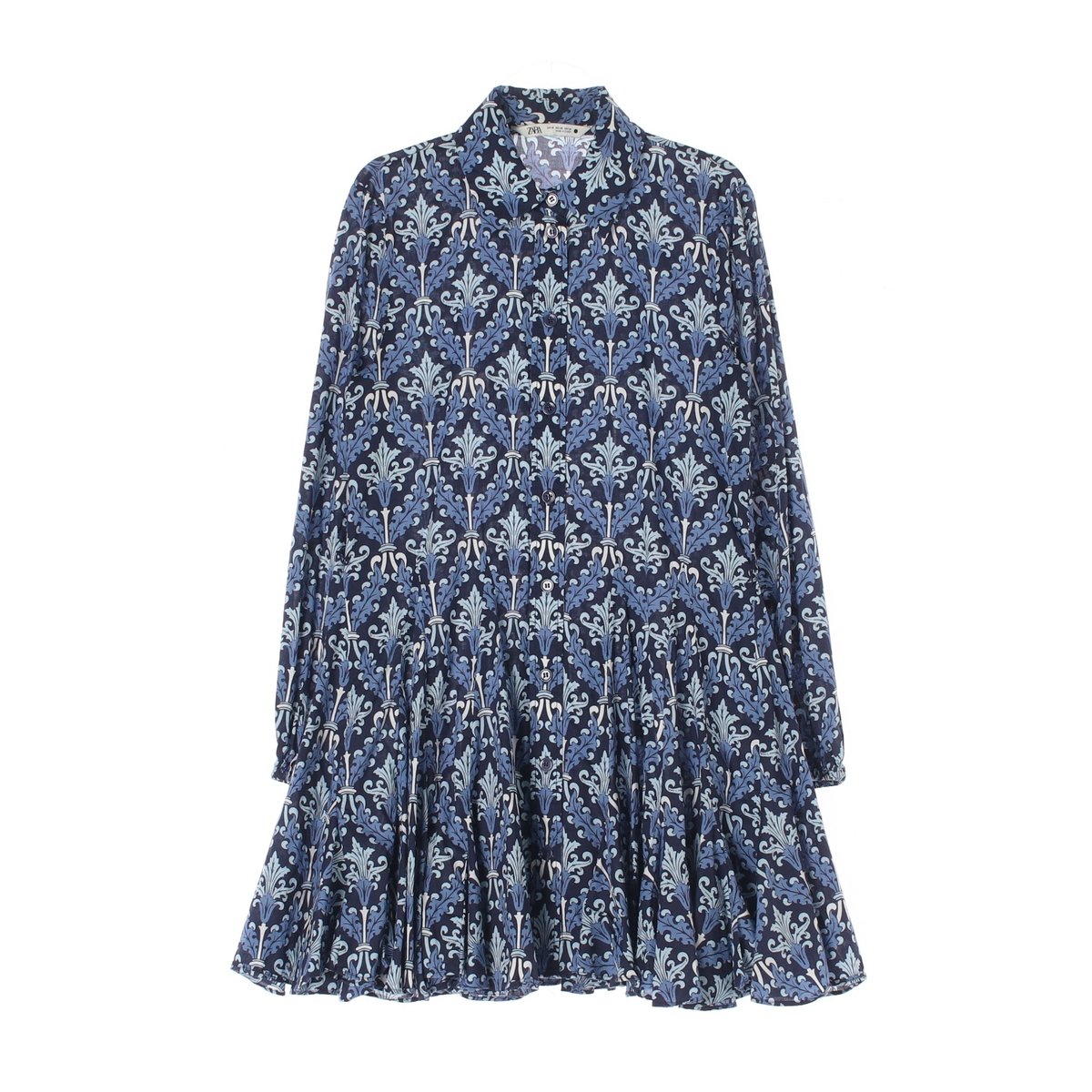 자라 블루 패턴 오버핏 셔츠 미니 원피스