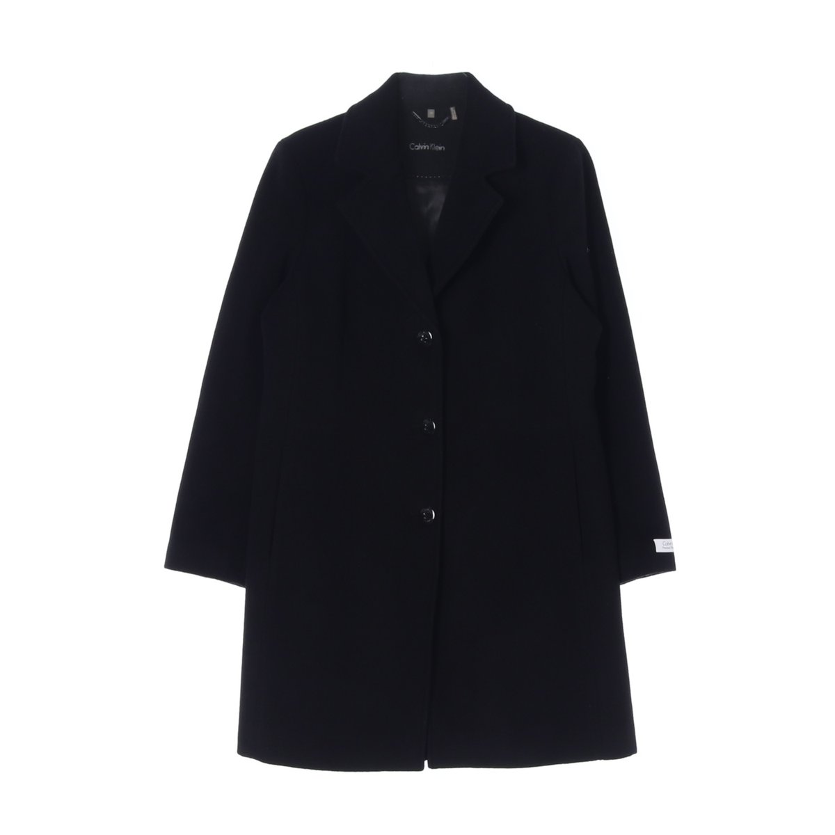 캘빈클라인 울캐시미어 블랙 로고 소매 싱글코트