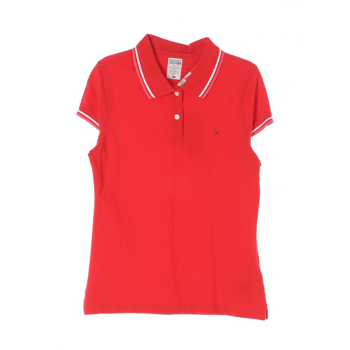타미힐피거 타미힐피거 레드 캡소매 반팔 카라 폴로 티셔츠.