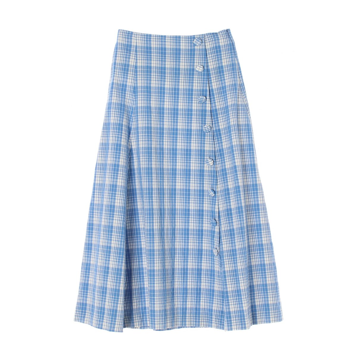 자라 하늘 체크 버튼 플레어 롱 스커트