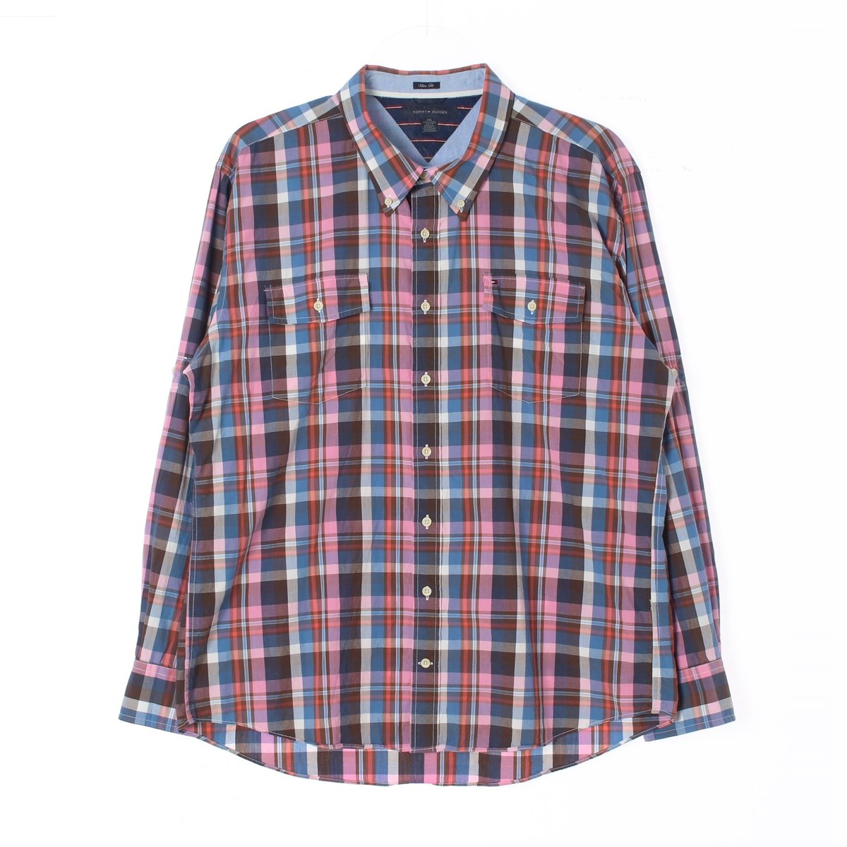 타미힐피거 핑크 체크 더블 포켓 셔츠