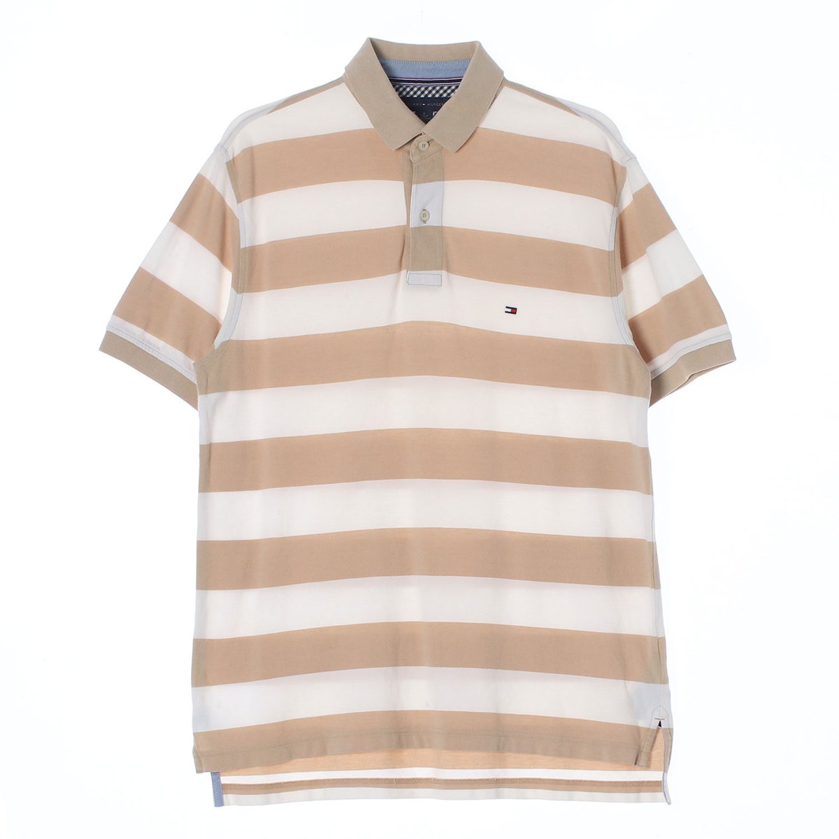 타미힐피거 베이지 스트라이프 반팔 폴로 카라 티셔츠
