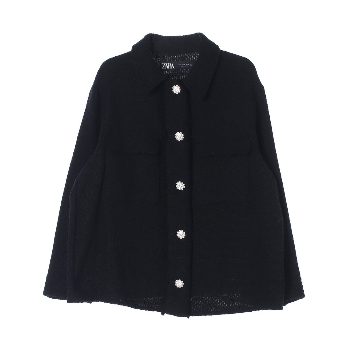자라 트위드 포켓 크리스탈 버튼 셔킷 자켓