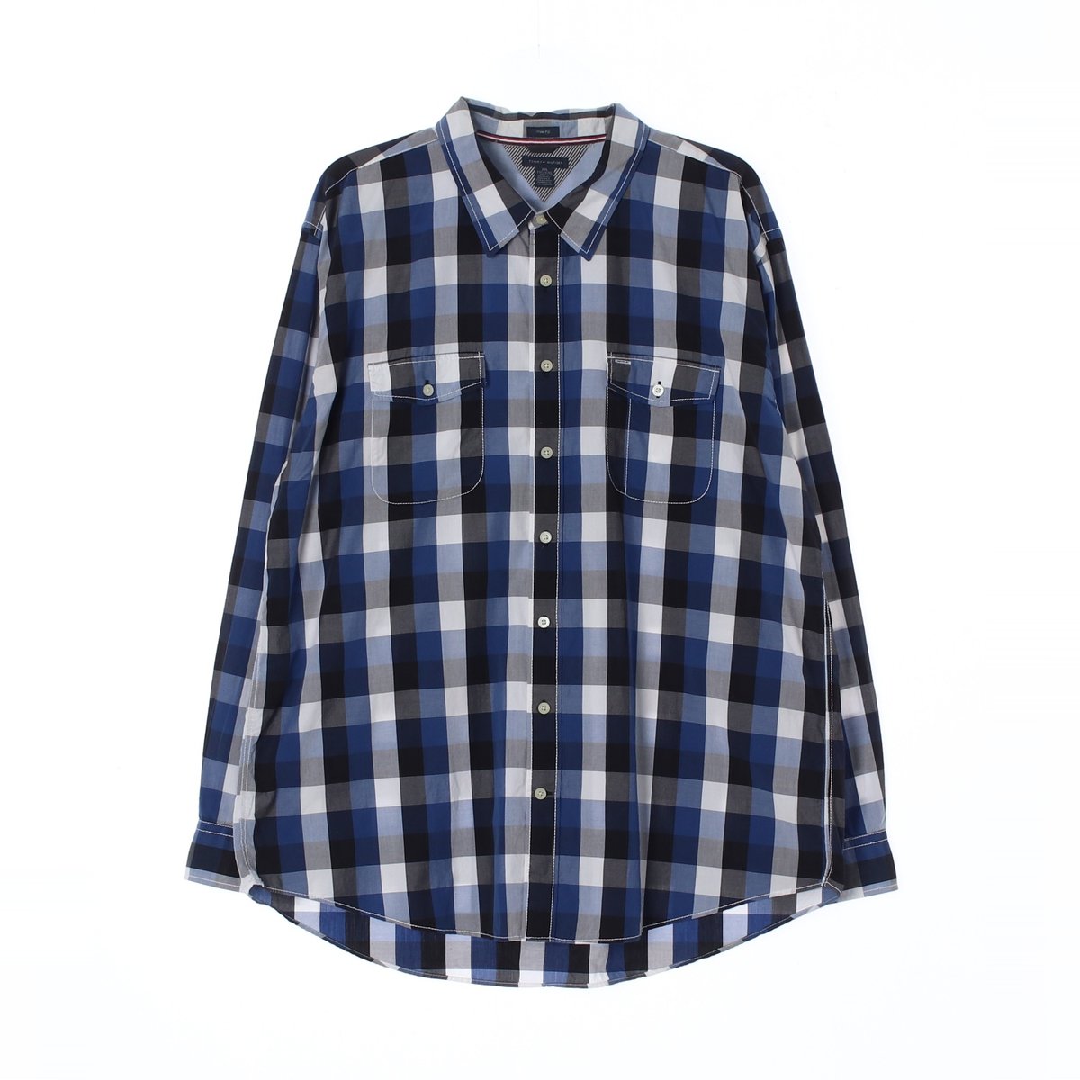 타미힐피거 네이비 투포켓 체크 트림핏 셔츠