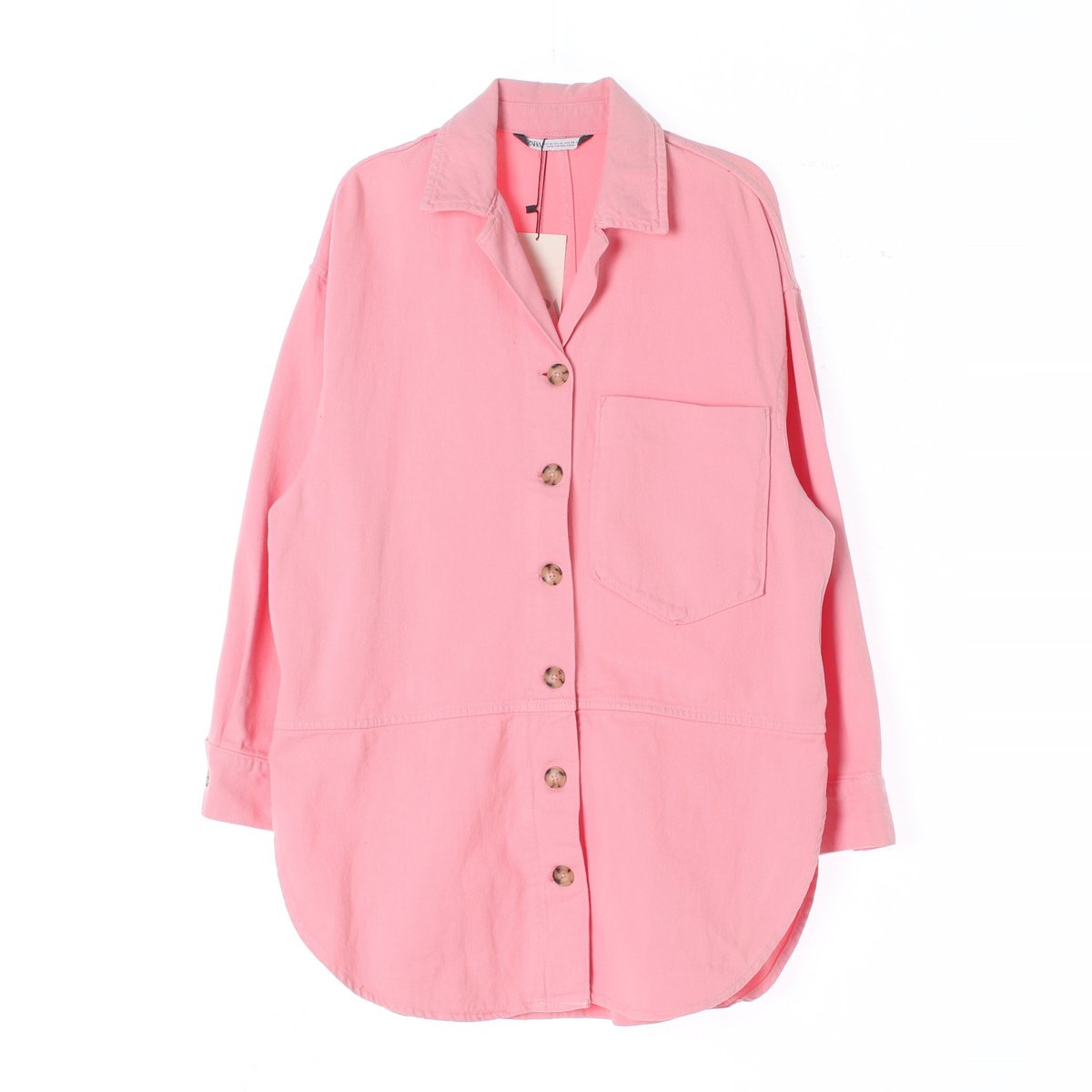 자라 자라 핑크 롱셔츠 셔킷 재킷.