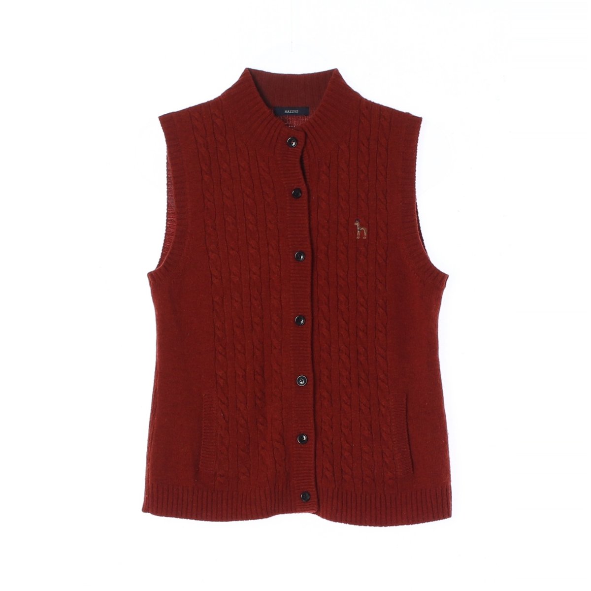 헤지스 울캐시미어100 꽈배기 니트 조끼 베스트 가디건